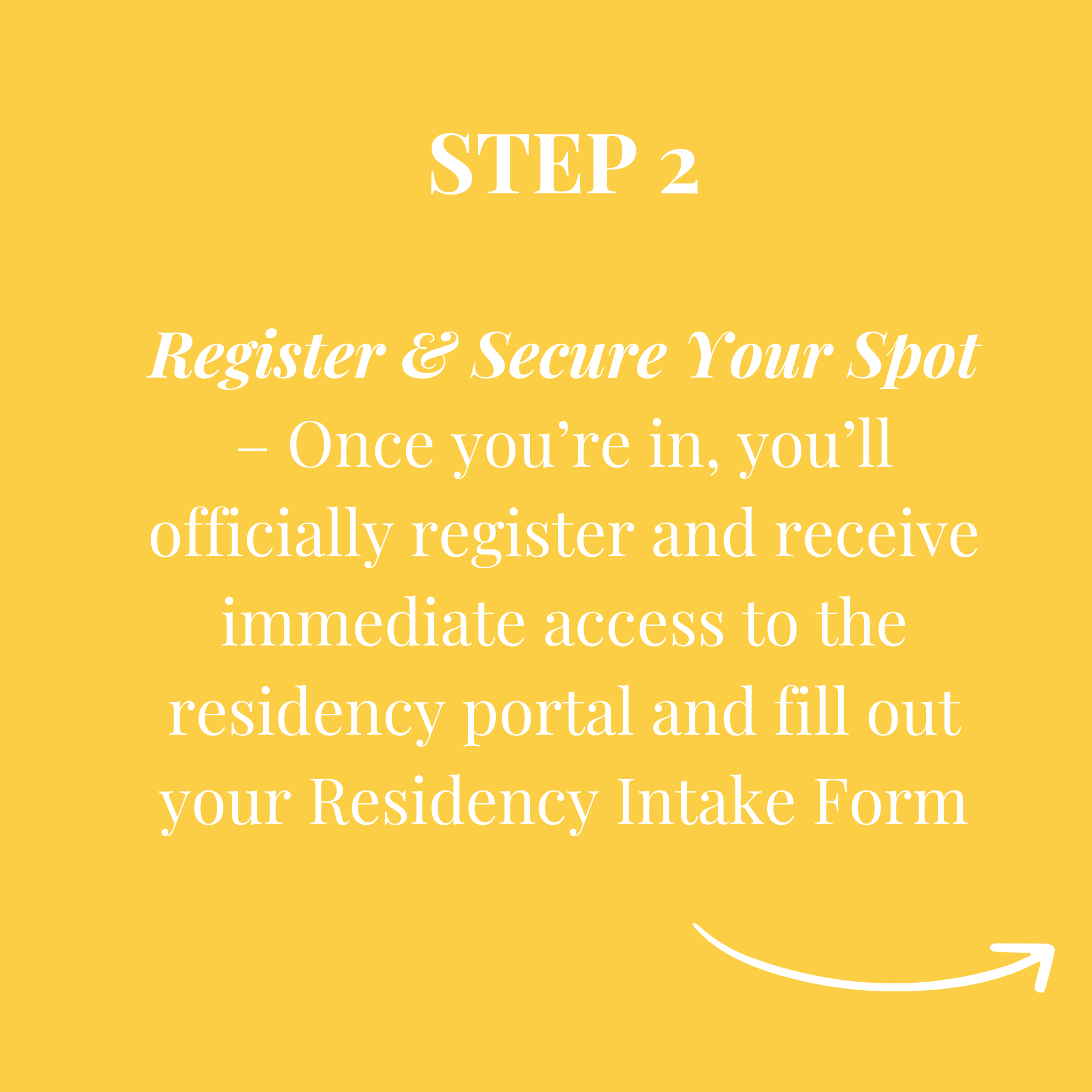 Receive a Personalized 4 month Roadmap through the process based on your primary challenges/desires from the Residency Intake Form.